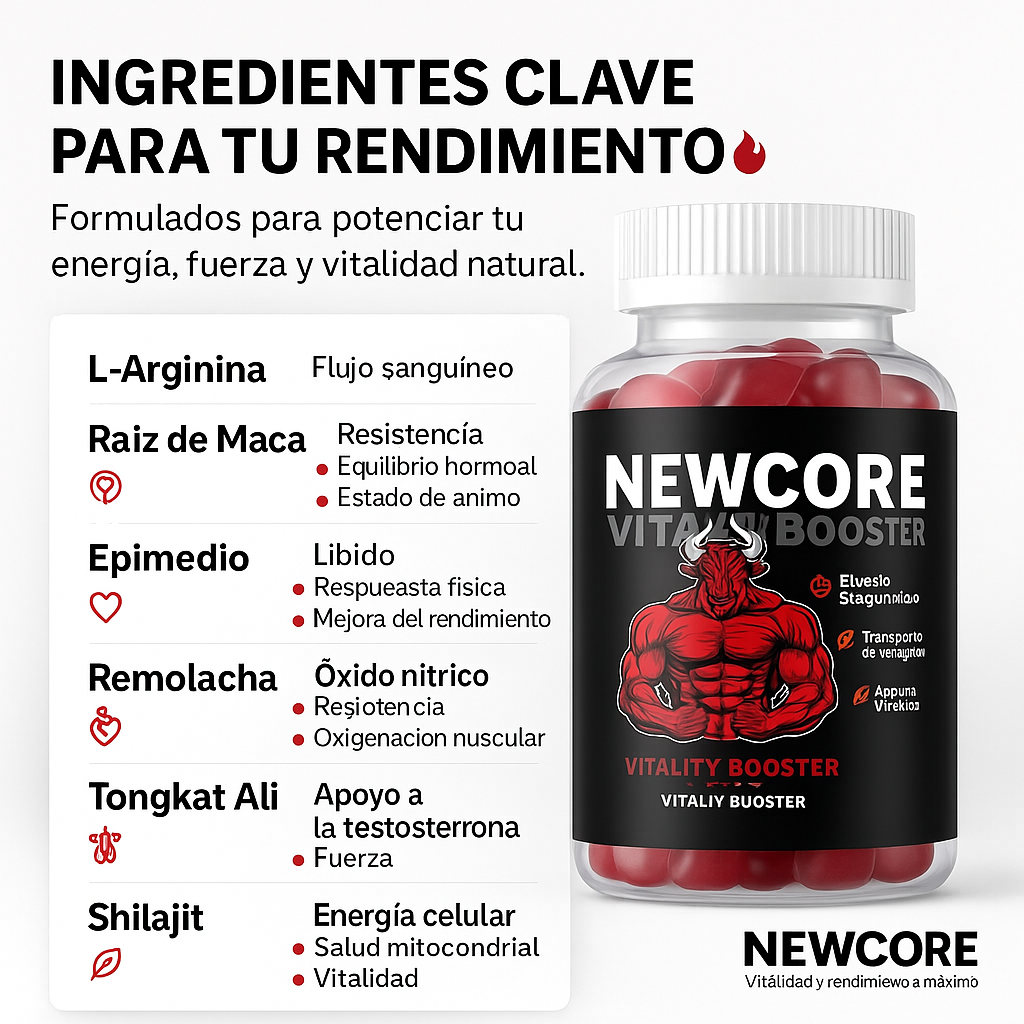 Newcore 7-in-1 te devuelve el foco, la energía y la potencia con solo 2 gomitas al día.